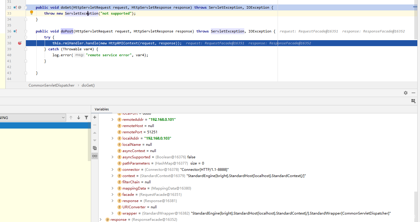 在nc.bs.framework.comn.serv.CommonServletDispatcher#doPost第38行下断点。