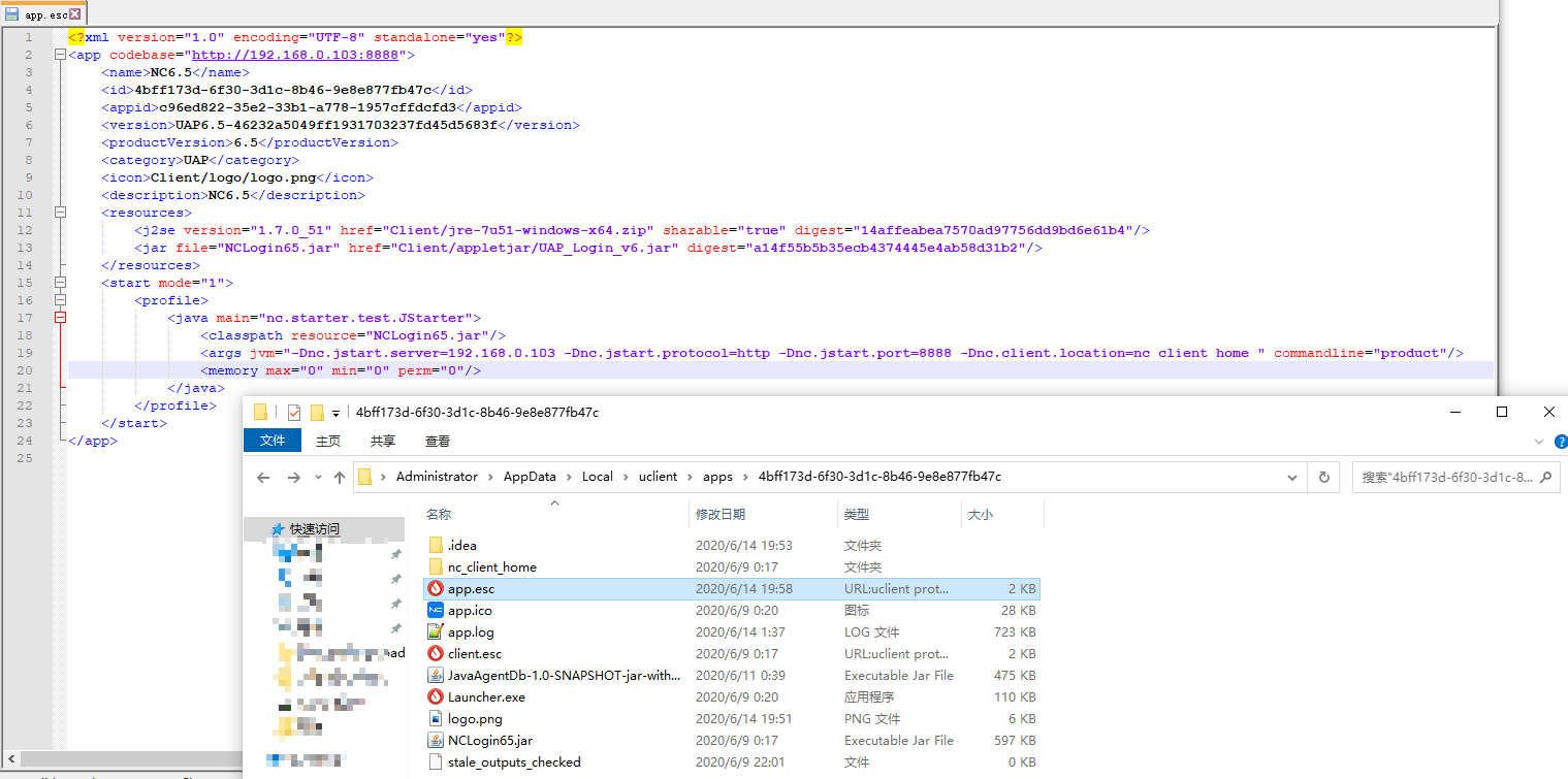 点击app.esc发现直接启动了nc客户端,查看文件内容,发现执行了NClogin65.jar文件中的nc.starter.test.JStarter: