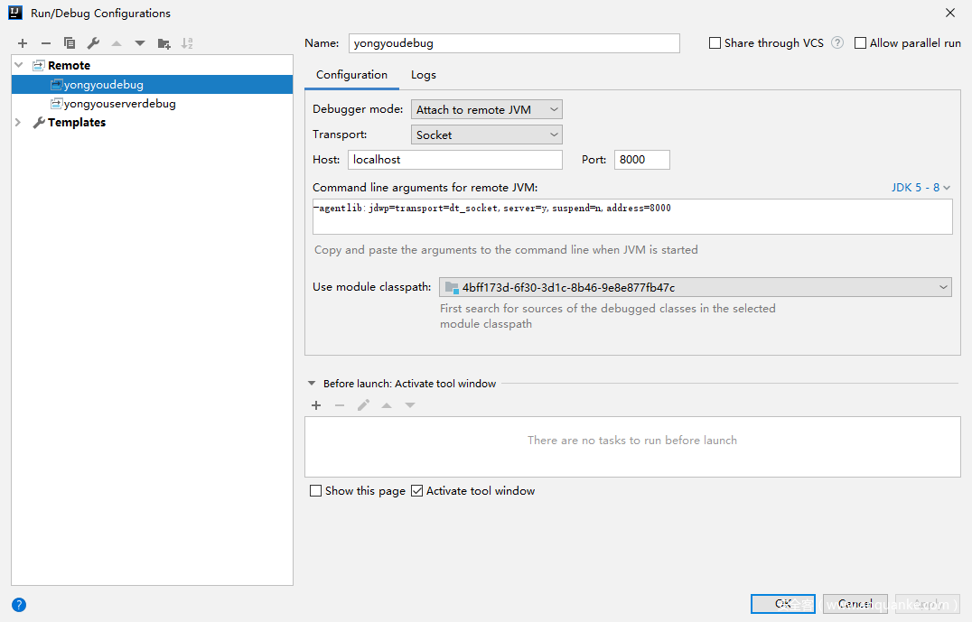 -agentlib:jdwp=transport=dt_socket,server=y,address=8000