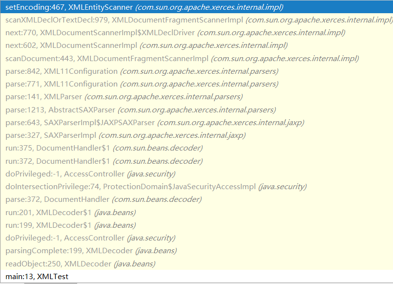 值得注意的是,xstream默认关闭DTD;XMLDecoder虽然没有关闭,但是对于Weblogic XMLDecoder,由于其特色的解析流程,对于Weblogic XMLDecoder是无法利用的。