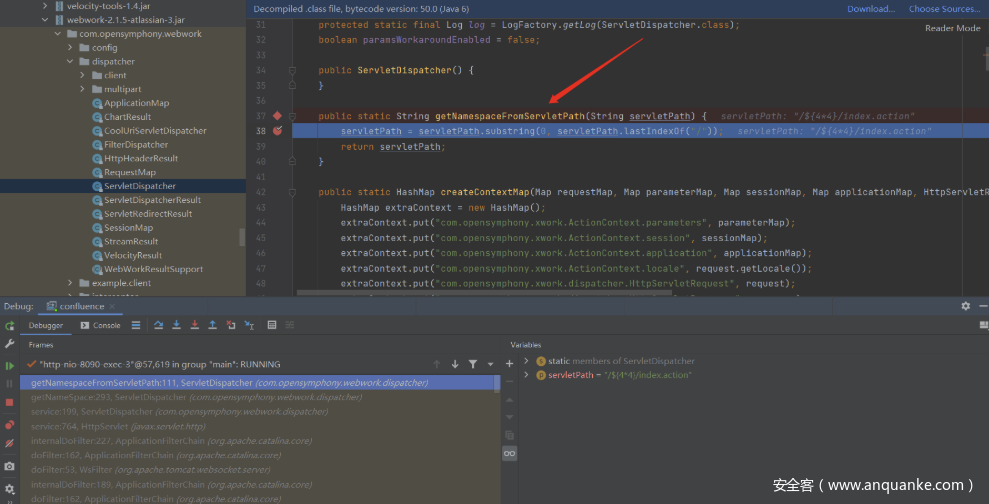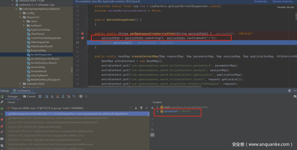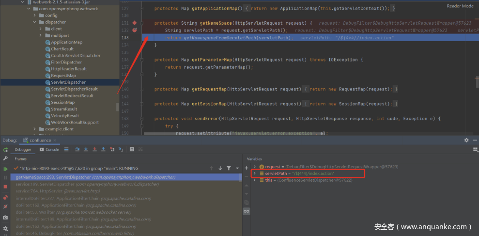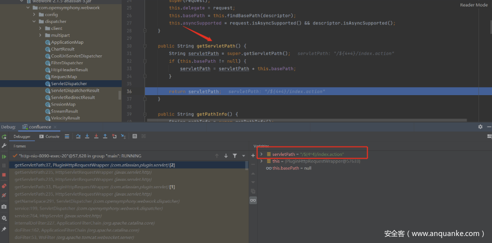 通过调用com.atlassian.plugin.servlet.PluginHttpRequertWrapper#getServletPath函数,获取了请求servletPath的值。