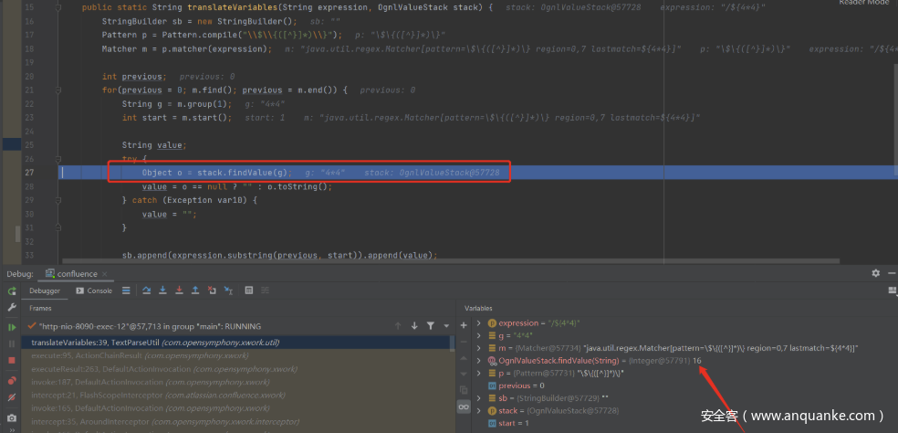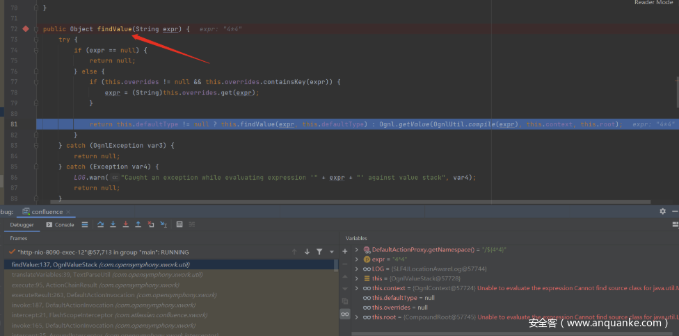 调用了com.opensymphony.xwork.util.OgnlValueStack#findValue函数对表达式进行解析。
