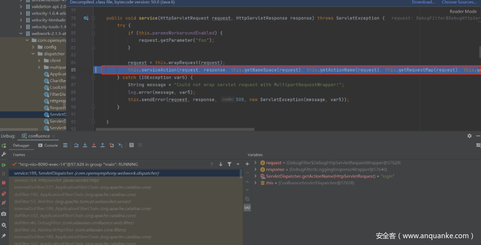 以登录请求为例,对confluence请求处理流程进行调试分析。