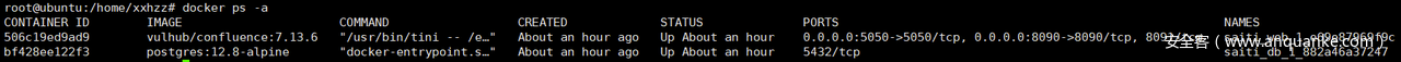 使用命令docker-compose up -d成功启动环境后,查看容器id等相关信息(5050为远程调试端口)。