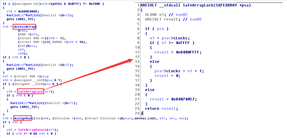 微软在CVE-2018-8373的补丁中通过给数组加锁的方式禁止在类似arr(2) = new MyClass的回调函数Default Property Get中修改数组的大小: