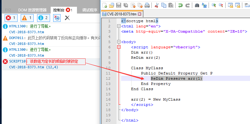 这次的回调利用的是Default Property Get,可以发现其触发流程与CVE-2018-1004类似,不同的是CVE-2018-1004是在Class_Terminate回调中修改了arr的buffer,而CVE-2018-8373则是在Default Property Get回调中修改了arr的buffer。