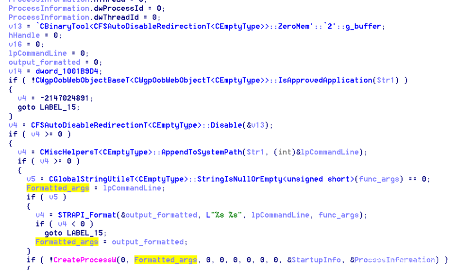 图5. 在Hex-Rays伪代码中可以看到LaunchSystemApplicationInternal会调用CreateProcessW