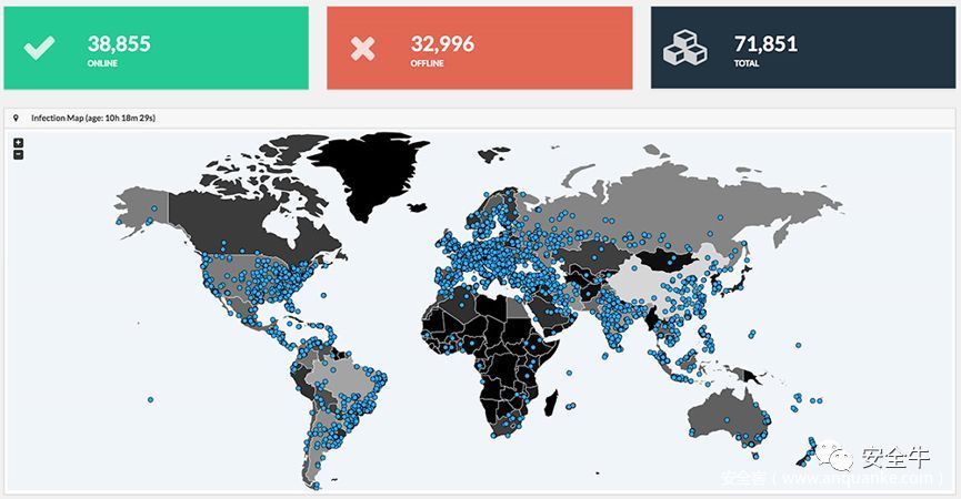 相比其他领域的IT企业,网络安全企业在威胁“态势感知”和“基于大数据分析的事件响应”方面,在技术堆栈和产品经验有着明显的优势。例如2017年在全球范围爆发,导致至少150个国家、30万名用户中招,造成损失达80亿美元的“WannaCry勒索病毒”(下图),比新冠病毒传播速度快得多的。