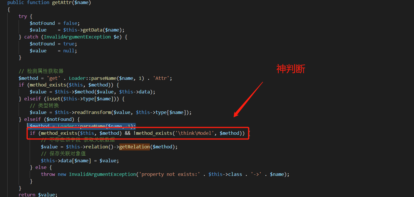 getAttr方法种倒是调用了getRelation方法,但是有个神判断,我过不去