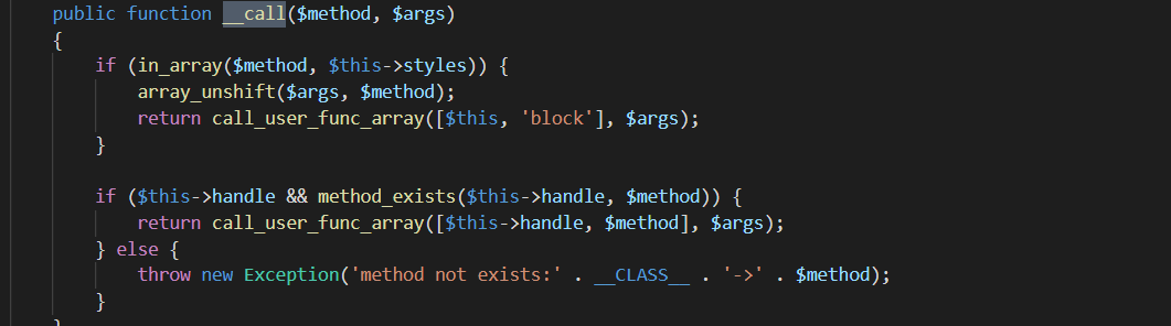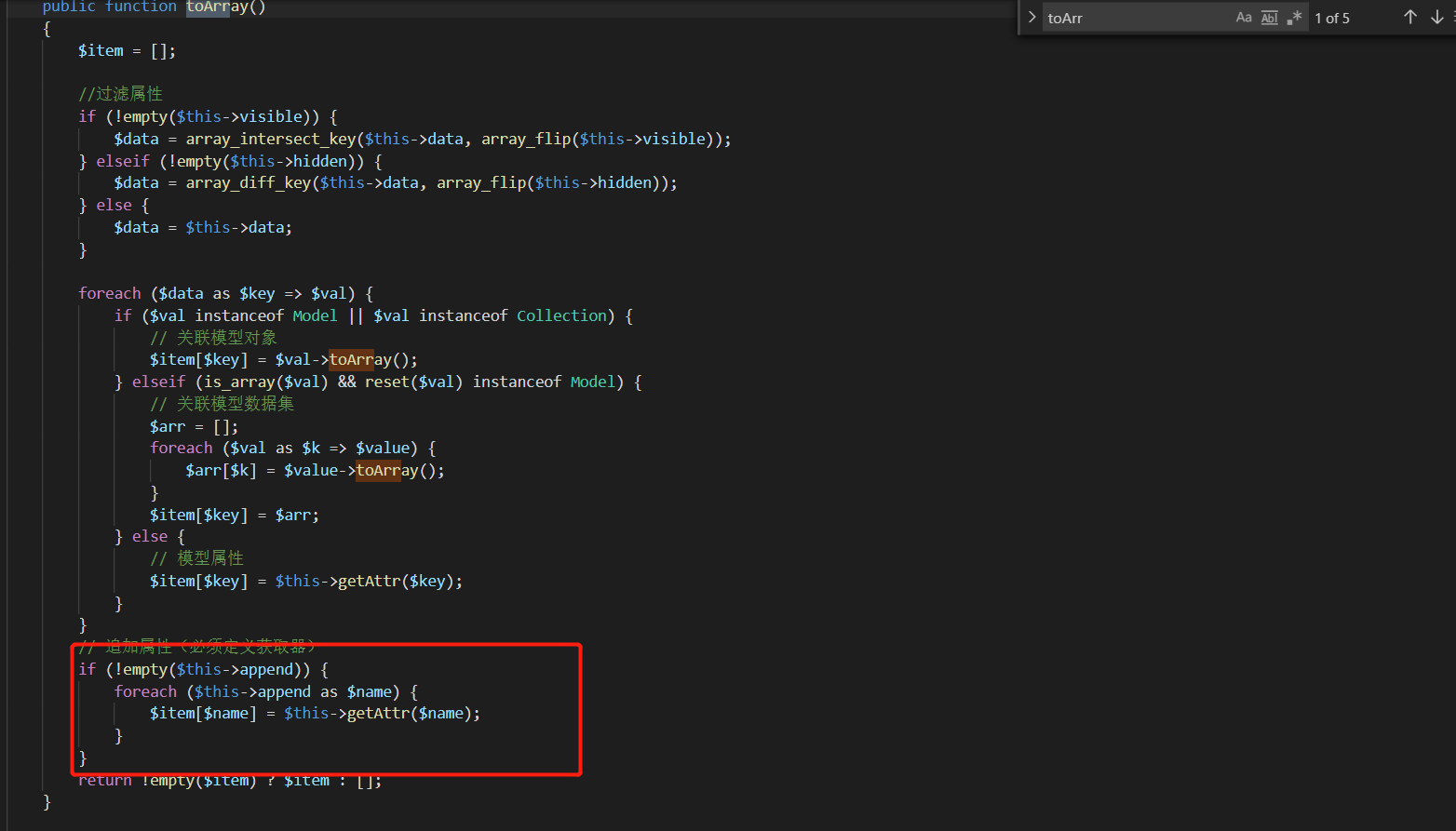 自然是大家都说的三目运算符处,触发的魔术方法,$this->append是可控的,所以name参数是可控的。注意需要满足以下条件