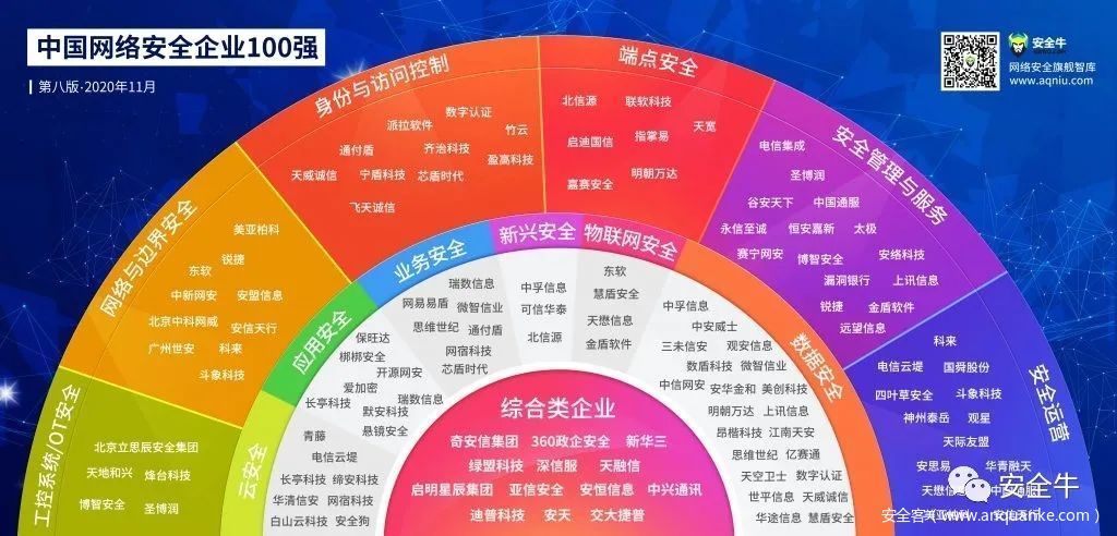 安全牛从经营、用户(甲方)、产业、社会贡献四大维度看安全,强调网络安全市场的生态与战略、技术创新与交付、客户价值与满意度的“三位一体”,编制中国网络安全企业100强。