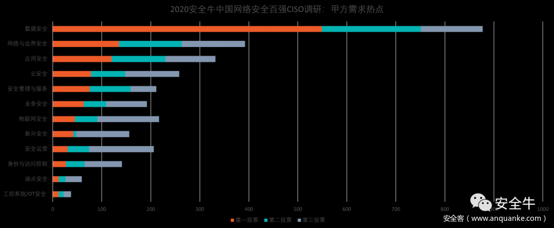 发现5:随着数据成为企业发展的重要资产,大数据安全、数据防泄密、隐私保护等数据安全问题,成为甲方用户在本次调研中,重点关注的保护和建设方向。在安全牛网络安全百强CISO调查的72个细分安全领域中,大数据安全、数据防泄漏、web安全、APP安全、高级威胁防护和隐私增强等是CISO最关注的细分安全领域。