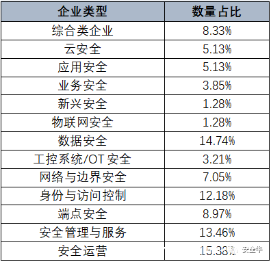 综合类企业仍然占据市场的大部分比例,且被大型厂商占据大部分市场空间,而如网络边界与安全、云安全等仍呈现较为松散的竞争格局,另外部分细分领域由于本身市场空间限制,并未有大型的专注型厂商出现。