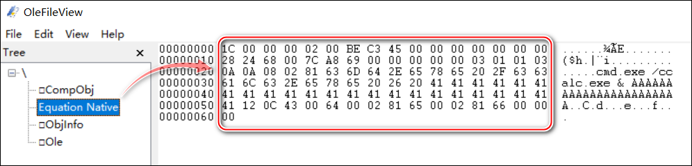 在office中,公式编辑器的数据被存储在一个OLE文件的“Equation Native”流中,三个公式编辑器漏洞都是在处理这个流的数据时出现的问题。