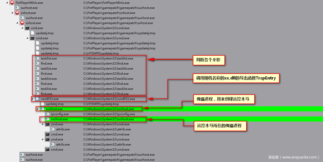 - svhost.exe通过cmd.exe运行C:\PotPlayer\gamepatch\gamepatch\gamepatch\config.ini指定的脚本C:\PotPlayer\gamepatch\gamepatch\updete.bat。