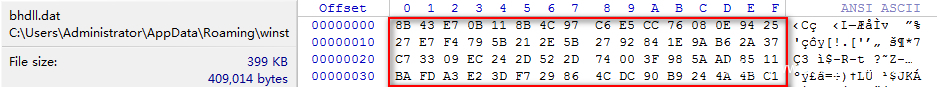 读取%APPDATA%\winst\bhdll.dat文件,通过解密bhdll.dat,获取PE然后创建1号傀儡进程svchost.exe。1号傀儡进程还会解密数据,创建2号傀儡进程。