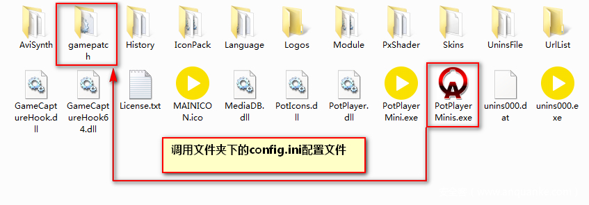 重命名PotPlayer\gamepatch\gamepatch\config.xml为config.ini,并把该文件拷贝到PotPlayer\gamepatch\路径下。为后续启动PotPlayer的正常播放器功能做准备。