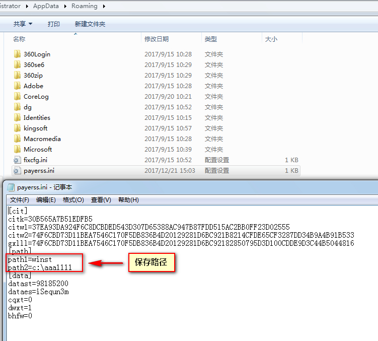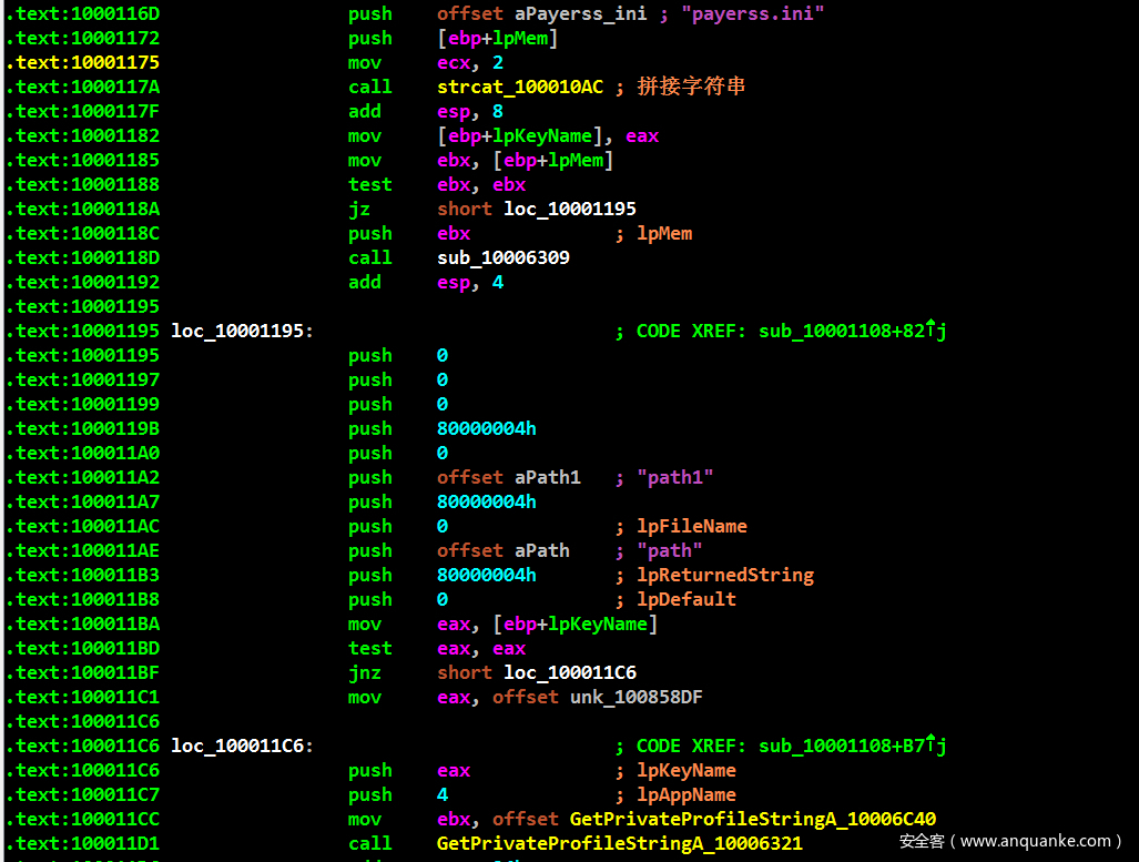 获取payerss.ini配置信息,主要是木马其他资源的保存路径