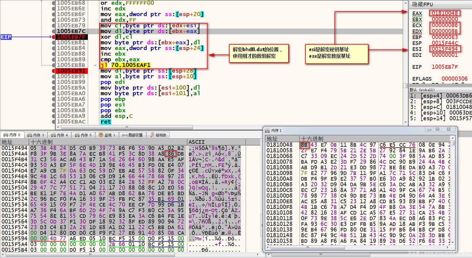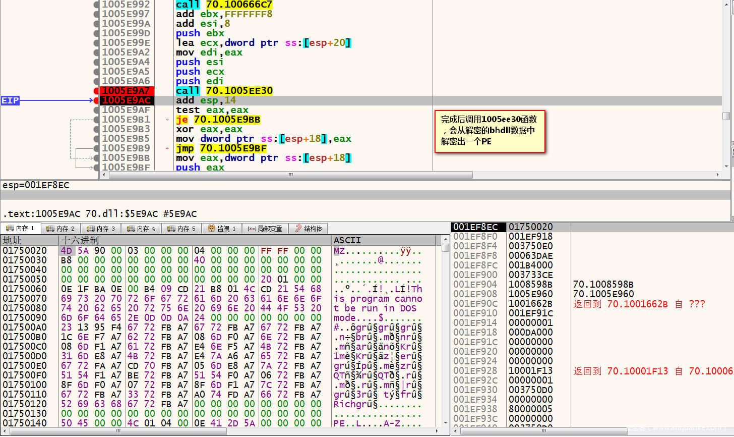 使用生成的秘钥,解密bhdat数据,最终生成1号傀儡进程的PE文件: