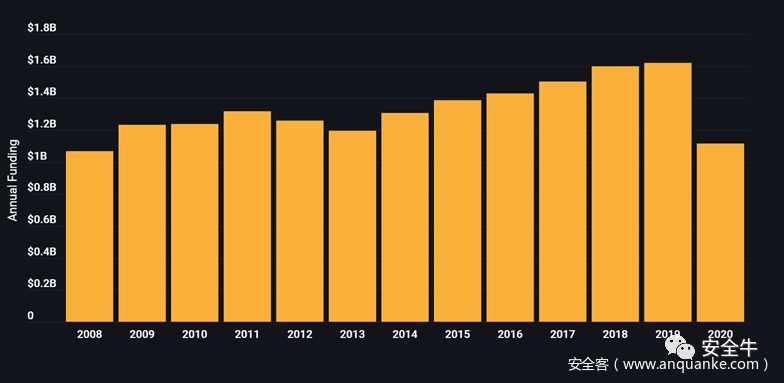 在维基百科上,MITRE被定义为一家“非营利组织”,但事实上2019年MITRE的收入为18亿美元(下图),听上去没有什么大不了,但MITRE对美国本土和全球网络空间安全的影响力,远超任何一家科技公司。Mitre Corp集团,实际上是美国政府背后比DARPA还要可怕和神秘的“黑科技”组织。