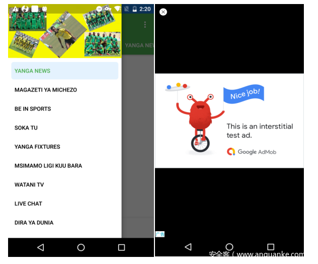 仿冒合法的SimbaSC和Yanga(YoungAfricans)SC应用。