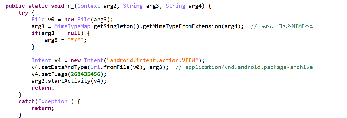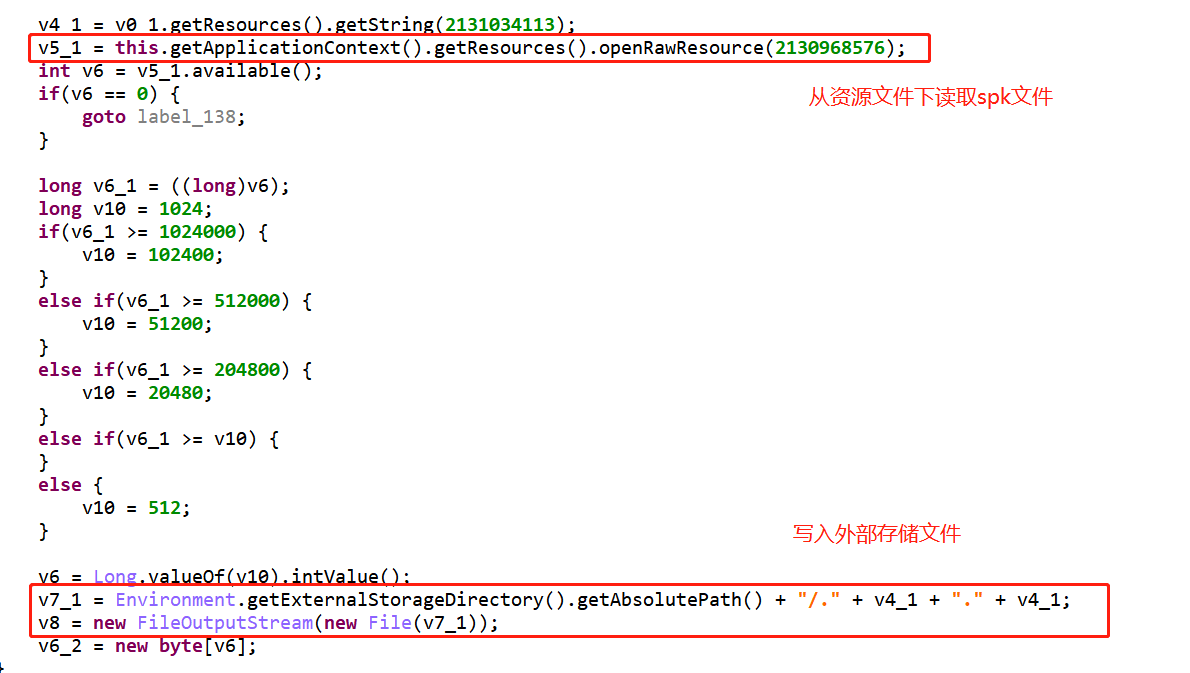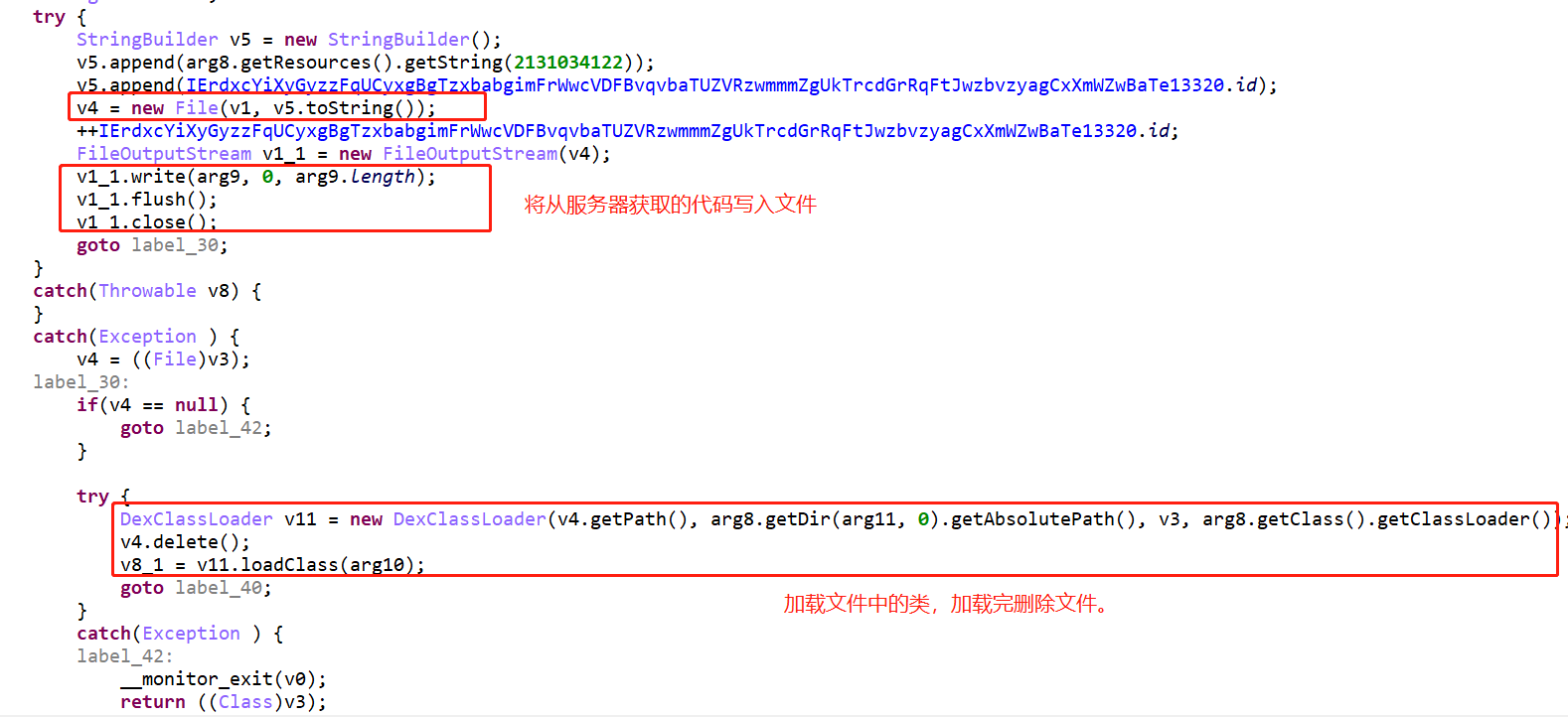 (4)从服务器获取恶意代码写入外部存储目录并加载执行,每次加载完文件便将文件删除。