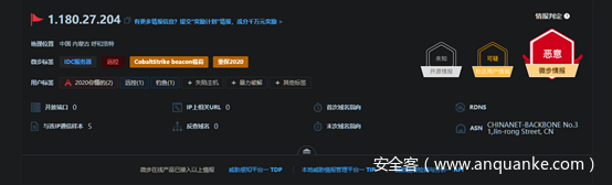 对于更高阶的安全从业人员来说,可以结合威胁情报,对红队人员进行针对性溯源。
