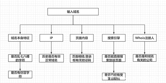 说了这么多,我们可以总结一下结合情报信息判断是否是钓鱼网站的基本思路,在实际的判断过程中,我们总结了如下图所示的判断流程: