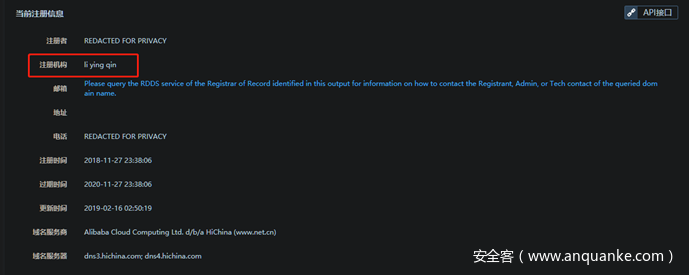 当然我们不止步于此,看一下该网站的注册人。