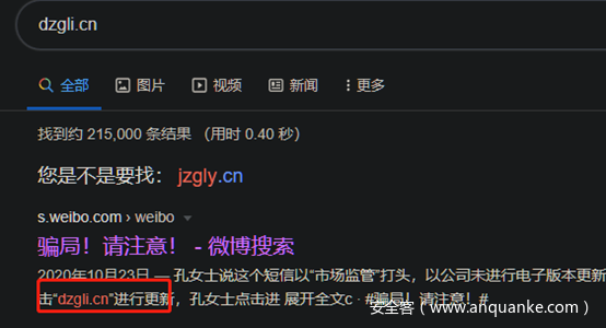 可以看到微博上已经有受害者上当受骗的相关新闻了。只可惜受骗的人没有提前看到我们的文章,没有学到我们的方法。