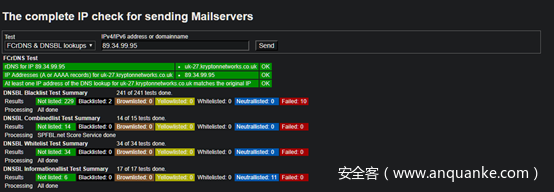 可以查询IP是否在各大DNS BL的黑名单上。