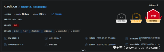 当然,笔者只是用钓鱼网站作为例子向大家解释一下威胁情报该怎么用。如果只用威胁情报来判断是否是钓鱼就有些大材小用了。