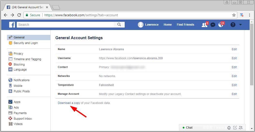在删除过程中的其中一个选择是,用户可下载 Facebook 所收集到的用户数据的所有数据的备份。用户按下“下载你的 Facebook 数据副本”连接就能收集同样的数据,该功能是 Facebook 在账户设置主页面新增的连接。