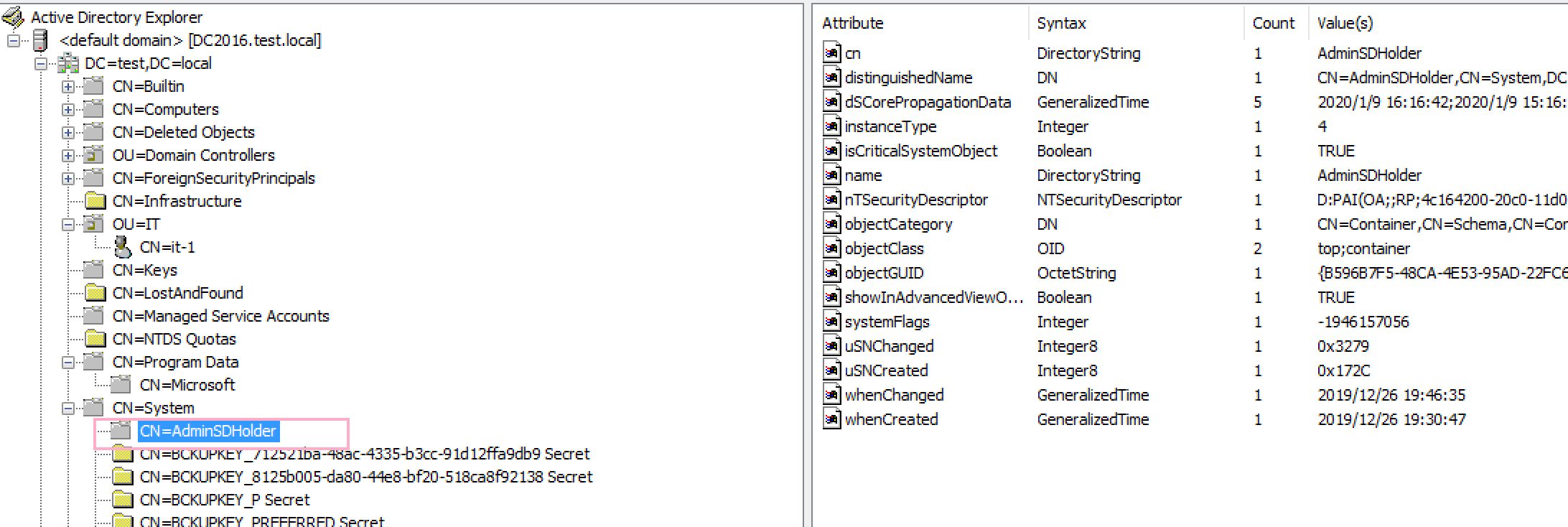 AdminSDHolder是位于Active Directory中的系统分区(CN=AdminSDHolder,CN=System,DC=test,DC=loca)中的一个对象。