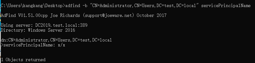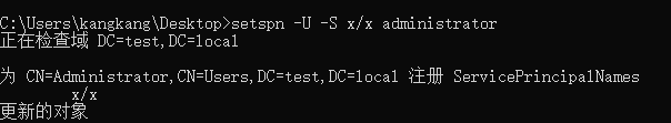 ● 给kangkang 设置spn,因为只有拥有spn的用户才能设置委派(所以在一些地方,包括我之前的文章会表述为只有服务用户和机器用户才能设置委派)