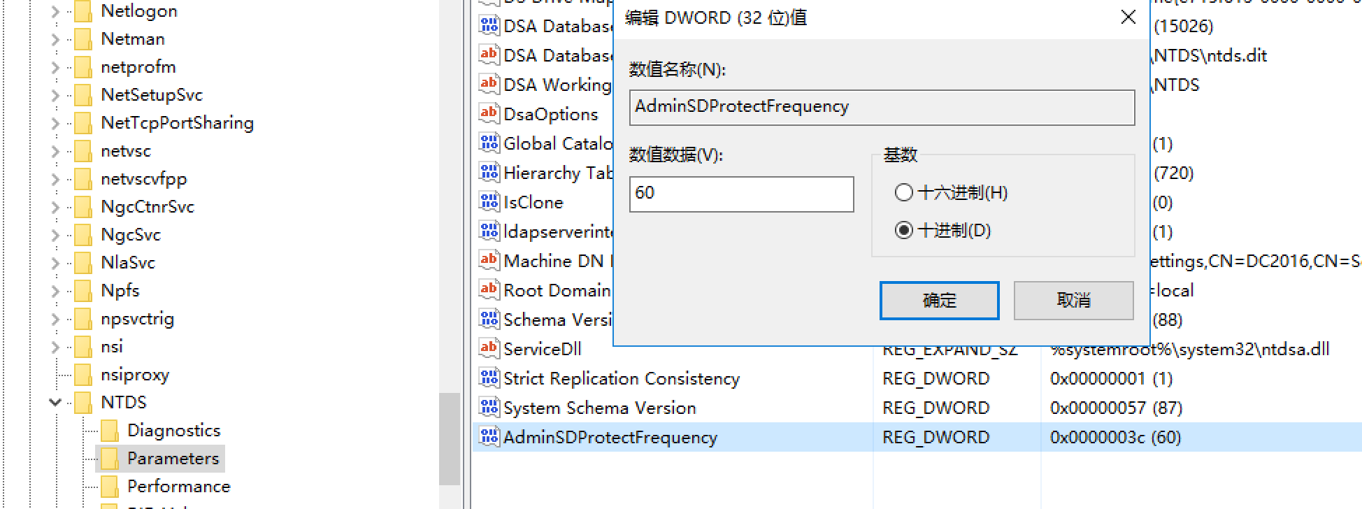 HKLM\SYSTEM\CurrentControlSet\Services\NTDS\Parameters\AdminSDProtectFrequency
