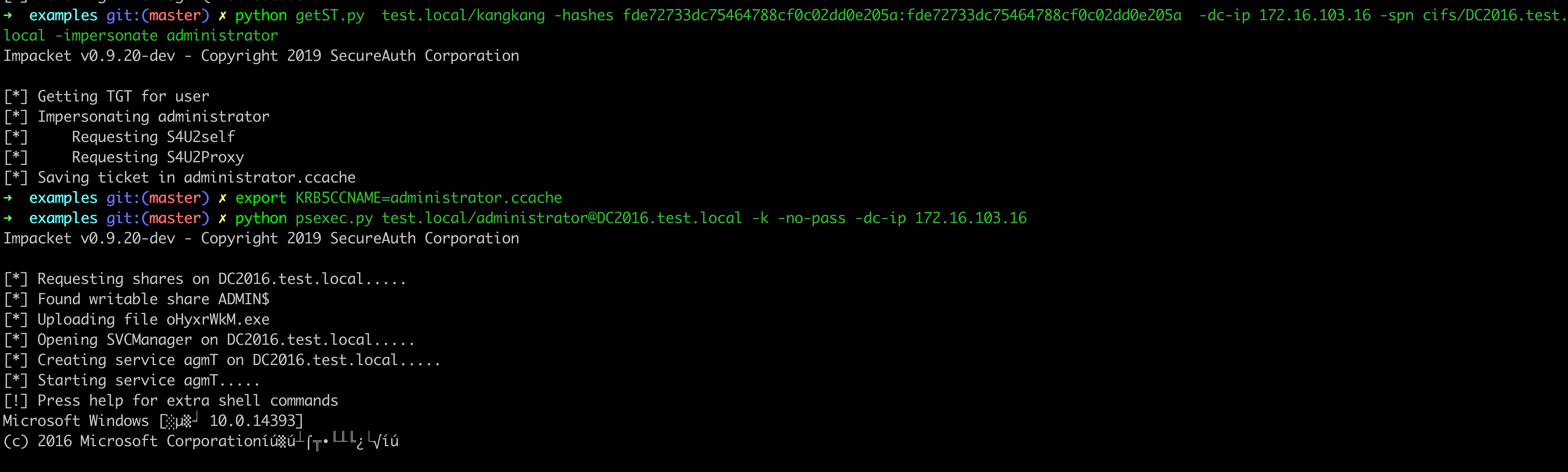 然后发起s4u2self 和s4u2proxy,模拟administrator 访问dc2016.test.local