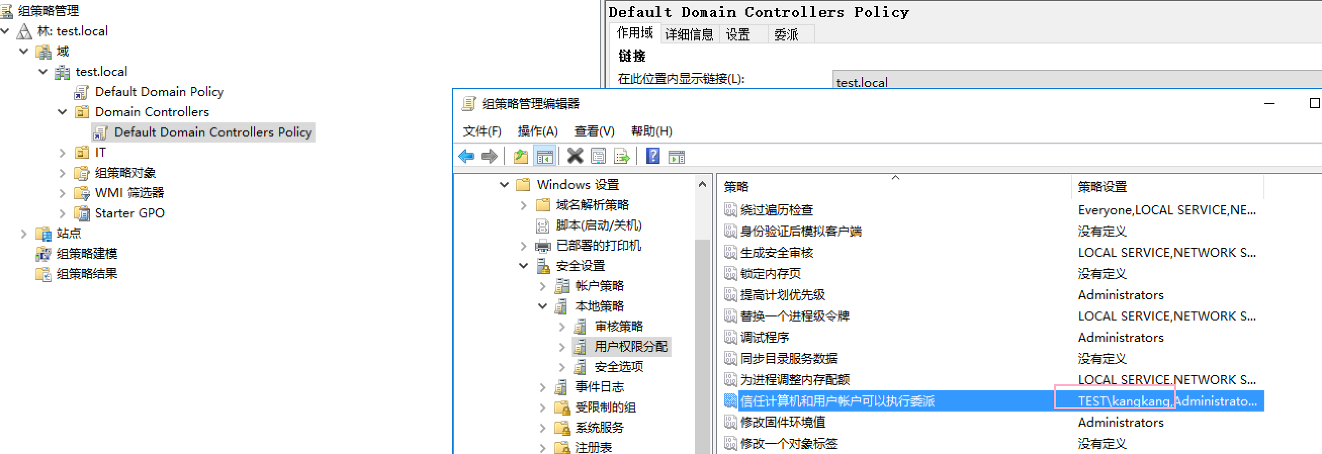 我们赋予kangkang SeEnableDelegationPrivilege特权(这一步需要通过组策略来实现,而且需要域管权限)