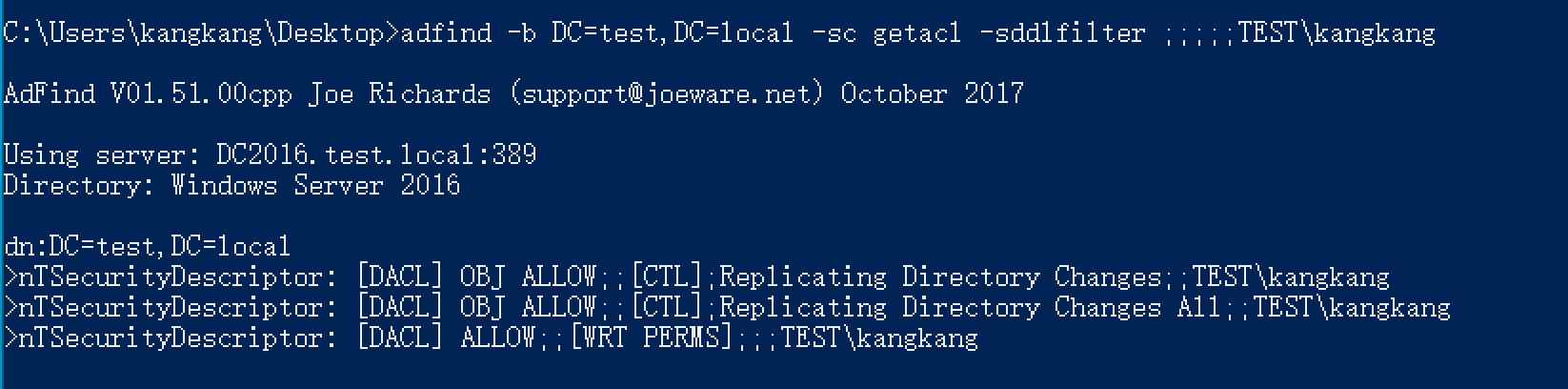 由于这个ACL过个60分钟会同步到特权组和用户,这个特权组和用户包括域管,所以其实kangkang对域管已经有完全控制的权限了,达到了后门的目的。