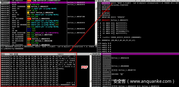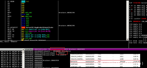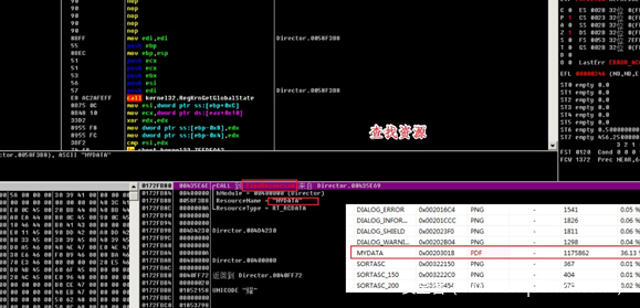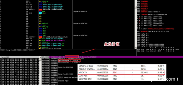 通过FindResource 函数查找资源MYDATA ,通过下图我们可以看出该资源是一个PDF 文件
