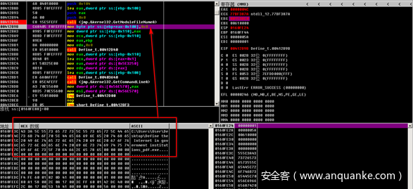 通过CreateFile 函数在%temp%目录下释放诱饵PDF文档Define the Internet in government institutions.pdf