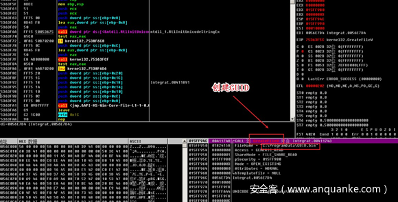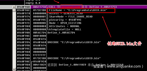 该样本属于上一个样本中的下载者(Downloader)部分,其还是通过创建 GUID .bin标记感染机器