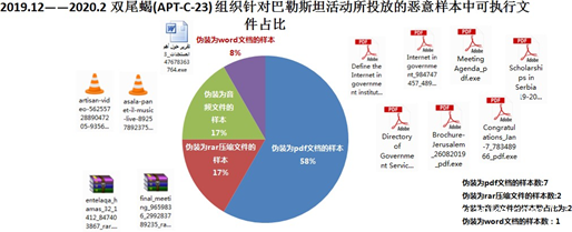 Gcow安全团队追影小组于 2019.12 月初开始监测到了双尾蝎APT组织通过投递带有诱饵文件的相关可执行文件针对巴勒斯坦的部门 进行了相应的攻击活动,这些诱饵文件涉及教育,科技,政治等方面的内容,其攻击活动一直持续到了 2020.2 月底.追影小组对该组织进行了一定时间的追踪.遂写成此报告还请各位看官欣赏.