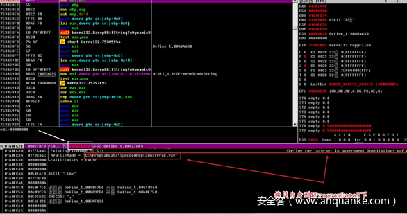 同时利用CopyFileA 函数将自身拷贝到%ProgramData% 目录下并且重命名为SyncDownOptzHostProc.exe