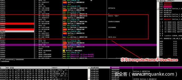 1.收集当前用户名以及当前计算机名称,并且读取 GUID.bin 文件中的GUID码