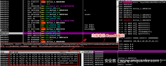 将当前程序运行路径信息通过base64编码组成aname 报文