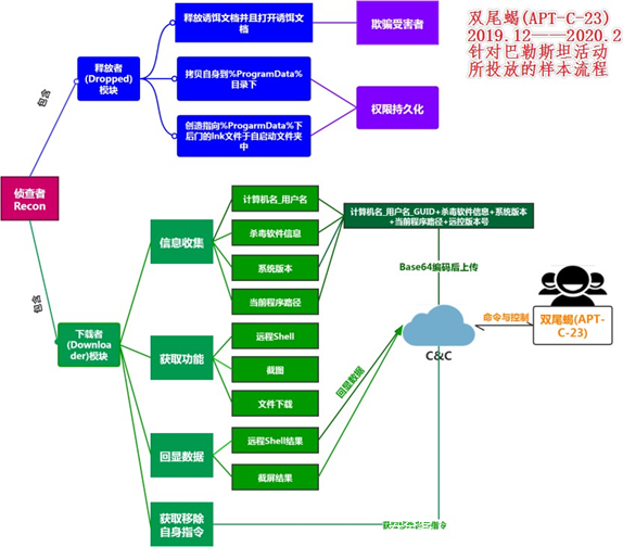 Gcow 安全团队追影小组针对双尾蝎APT组织此次针对巴勒斯坦的活动进行了详细的分析并且通过绘制了一幅样本执行的流程图方便各位看官的理解