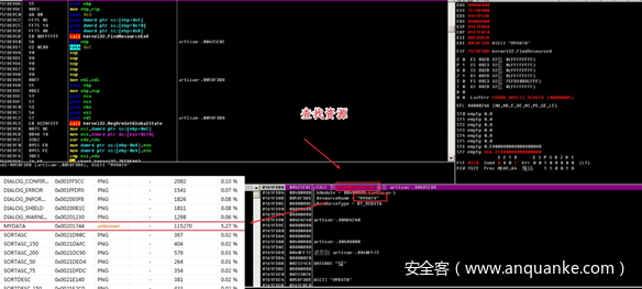 通过FindResource 函数查找资源MYDATA ,通过下图我们可以看出该资源是一个unknown 文件