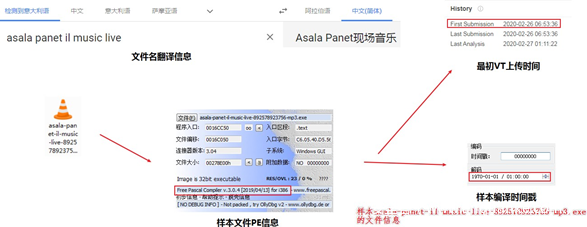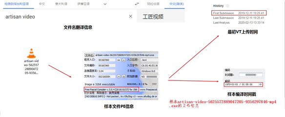 在这 12 个可执行文件样本中,有 7 个样本伪装成pdf 文档文件,有 1 个样本伪装为word 文档文件,有 2 个样本伪装为rar 压缩文件.有 2 个样本伪装成mp3 , mp4 音频文件