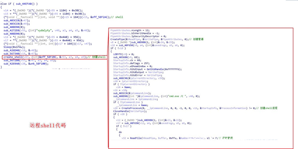 部分主要是通过进行信息收集以及等待C2给予的回显,主要功能有:远程shell,文件下载,屏幕截屏
